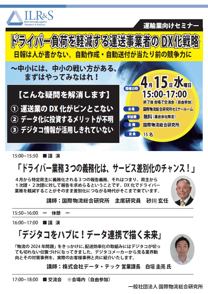 一般社団法人国際物流総合研究所と株式会社データ・テックのコラボセミナーが実現!